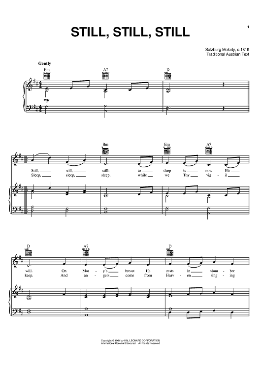 Digital Sheet Music for Still, Still, Still by Salzburg Melody scored for Piano/Vocal/Chords; id:369891