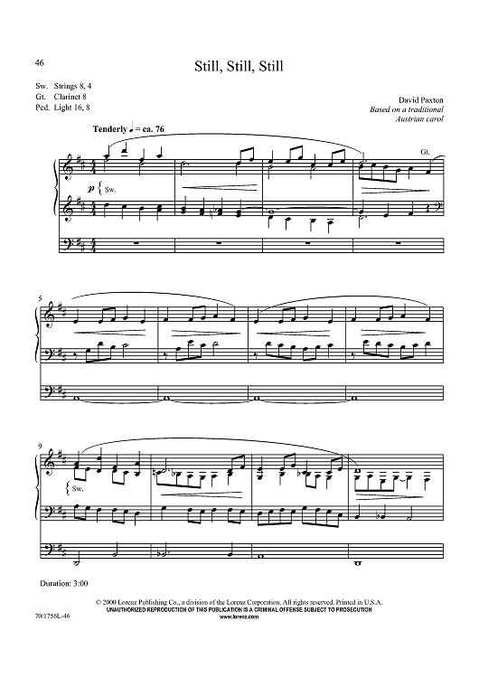 Digital Sheet Music for Still, Still, Still by David Paxton, Austrian Carol scored for Organ Solo; id:436722