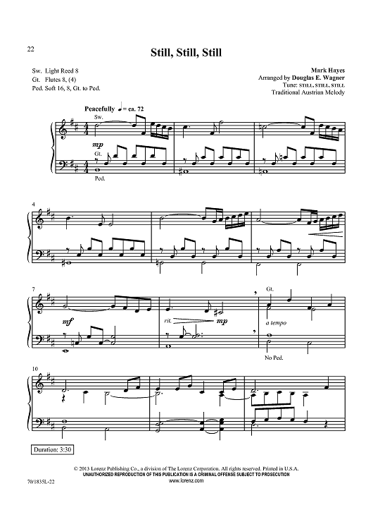 Digital Sheet Music for Still, Still, Still by Mark Hayes, Douglas Wagner, Traditional Austrian Melody scored for Organ Solo; id:437249
