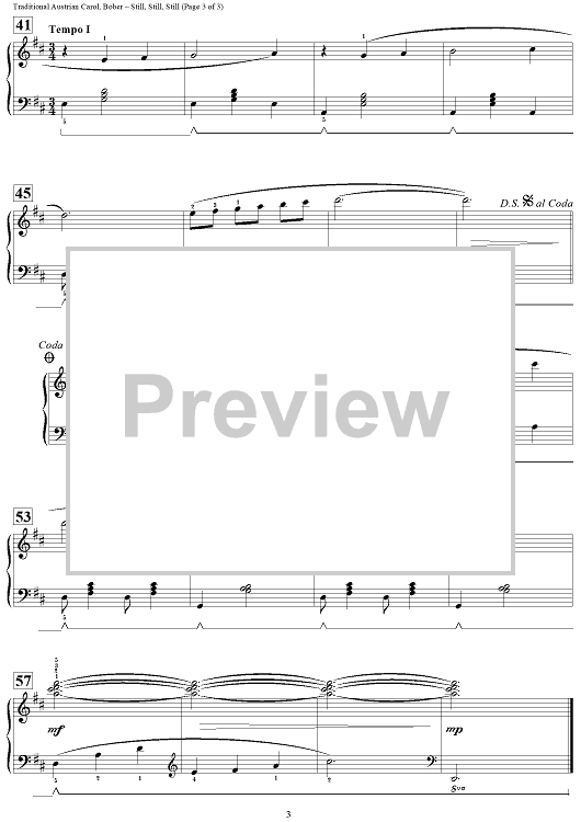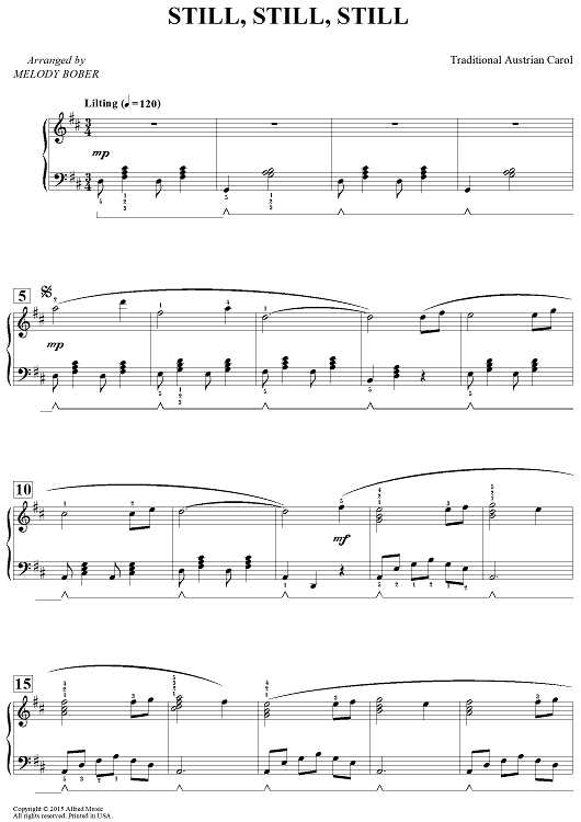 Digital Sheet Music for Still, Still, Still by Traditional Austrian Carol, Melody Bober scored for Piano; id:458959