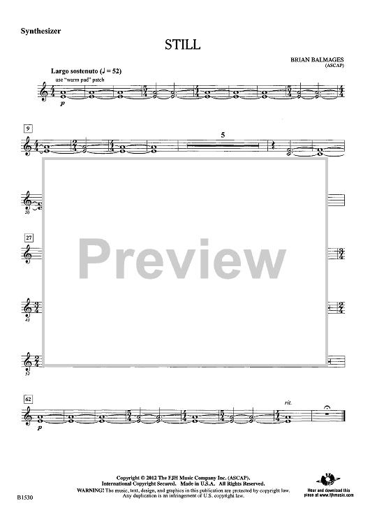 "Still - Synthesizer" Sheet Music by Brian Balmages