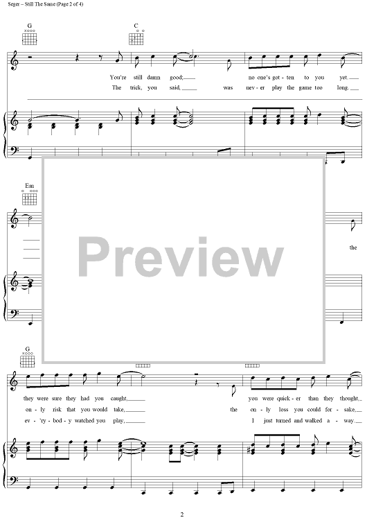 Digital Sheet Music for Still The Same by Bob Seger scored for Piano/Vocal/Chords; id:111374