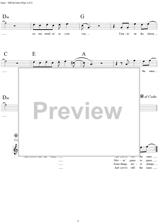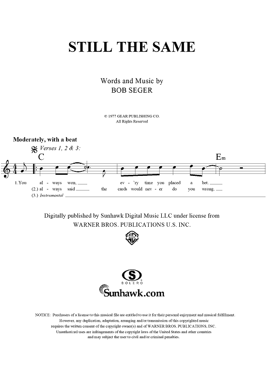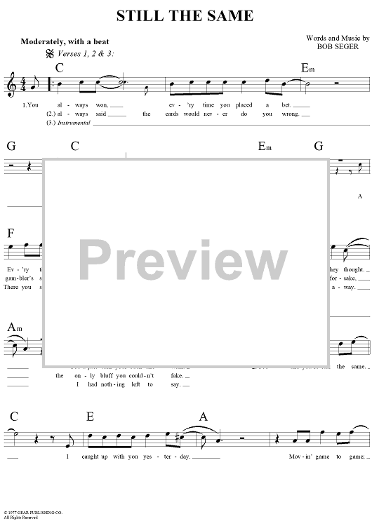 Digital Sheet Music for Still The Same by Bob Seger, Bob Seger & The Silver Bullet Band scored for Lead Sheet; id:256060
