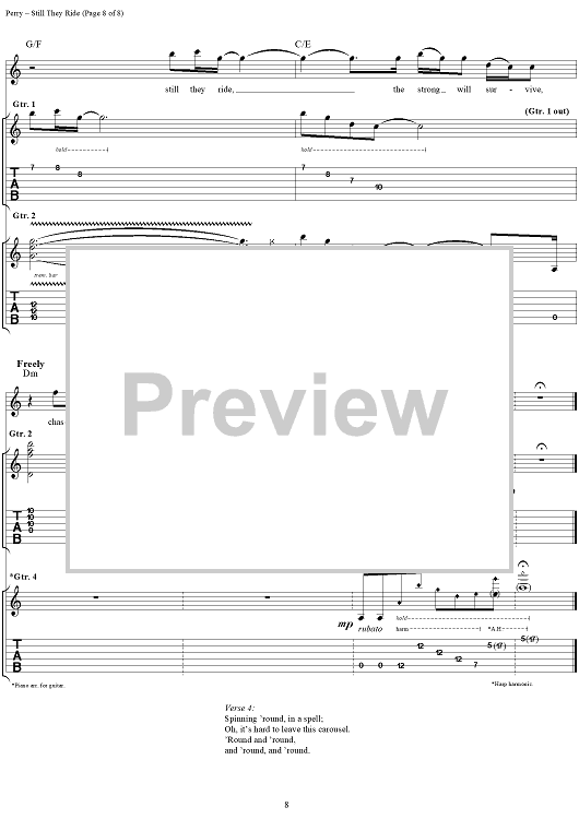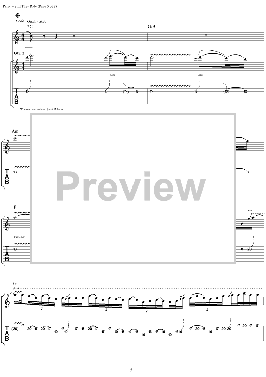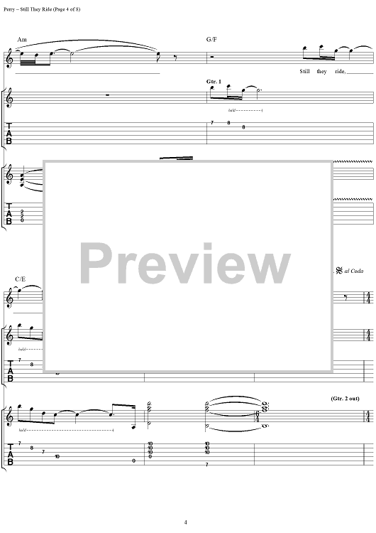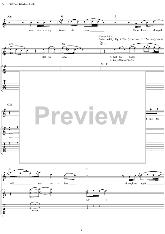 Digital Sheet Music for Still They Ride by Steve Perry, Neal Schon, Jonathan Cain, Journey scored for Guitar Tab/Vocal; id:115805