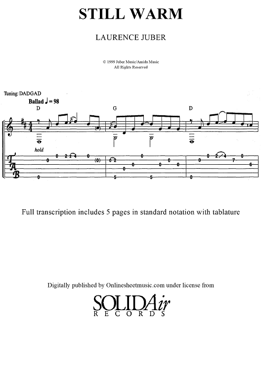 Digital Sheet Music for Still Warm (No MP3) by , Laurence Juber scored for Guitar Tab; id:452025
