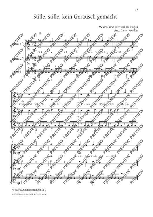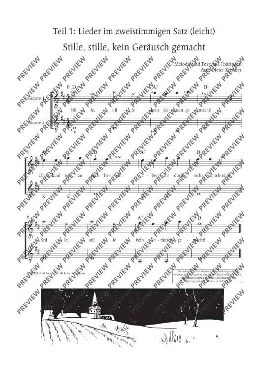 Digital Sheet Music for Stille, stille, kein Geräusch gemacht by Dieter Kreidler scored for 1-3 Guitars (melody Instruments In C Ad Lib.); id:481733