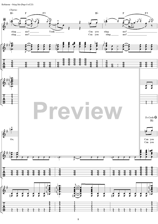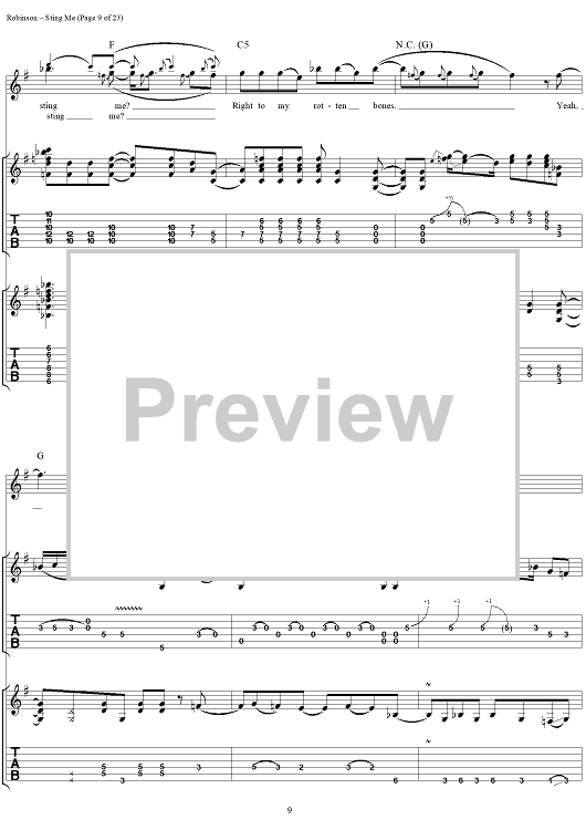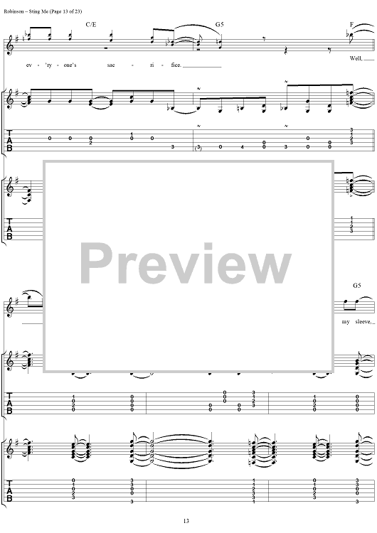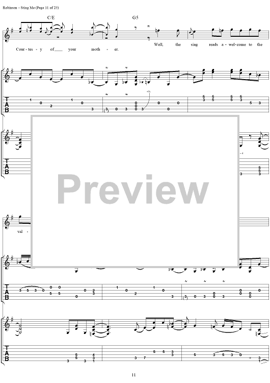 Digital Sheet Music for Sting Me by The Black Crowes, Chris Robinson, Rich Robinson scored for Guitar Tab/Vocal; id:255985