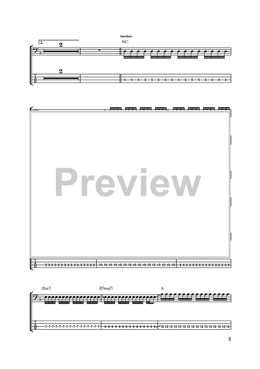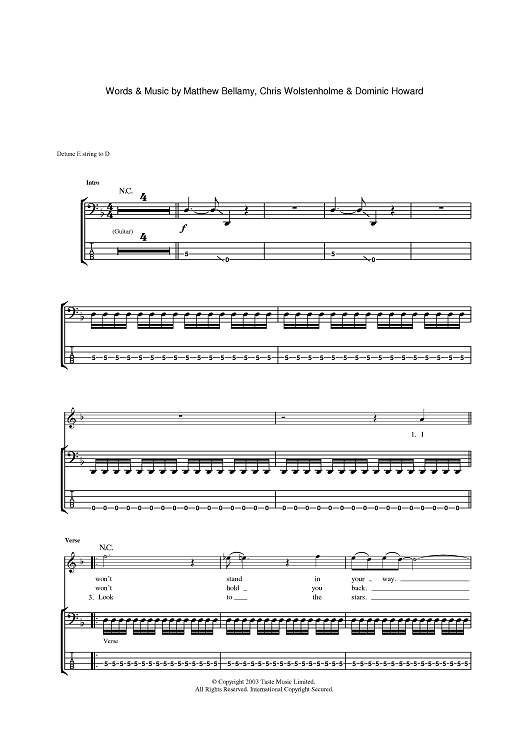 Digital Sheet Music for Stockholm Syndrome by Matthew Bellamy, Dominic Howard, Muse, Chris Wolstenholme scored for Bass Tab; id:383403