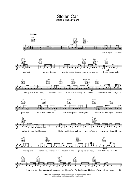 Digital Sheet Music for Stolen Car by Sting scored for Lead Sheet; id:378180