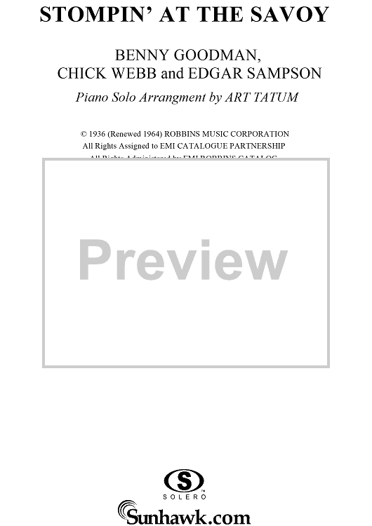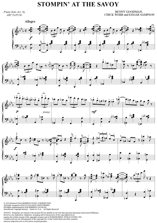 "Stompin' At The Savoy" Sheet Music by Art Tatum