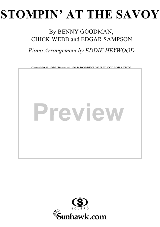 Digital Sheet Music for Stompin' At The Savoy by Chick Webb, Benny Goodman, Edgar Sampson, Eddie Heywood scored for Piano Solo; id:116192
