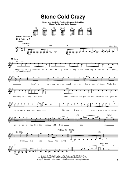 Digital Sheet Music for Stone Cold Crazy by Metallica, Queen, Freddie Mercury, Brian May, Roger Taylor scored for Easy Guitar; id:370964