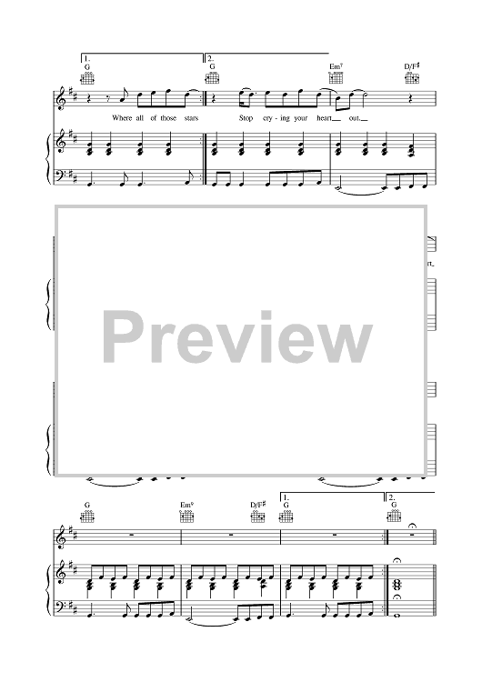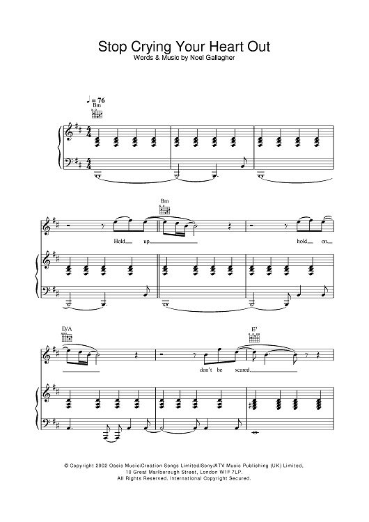 Digital Sheet Music for Stop Crying Your Heart Out by Oasis scored for Piano/Vocal/Chords; id:377633