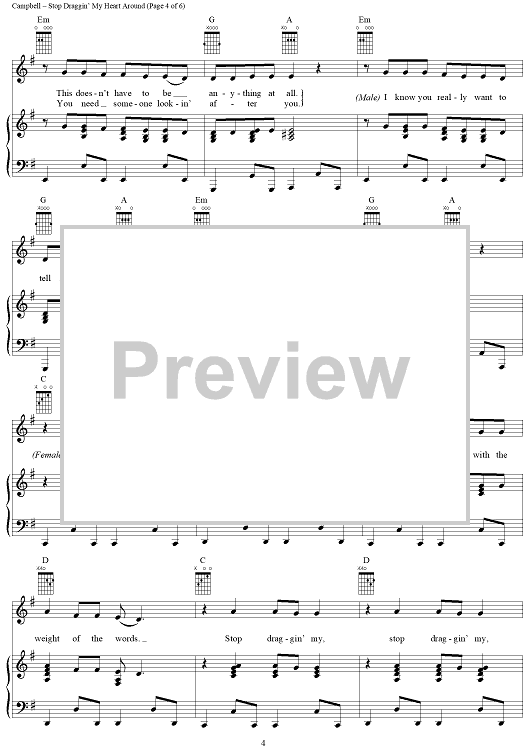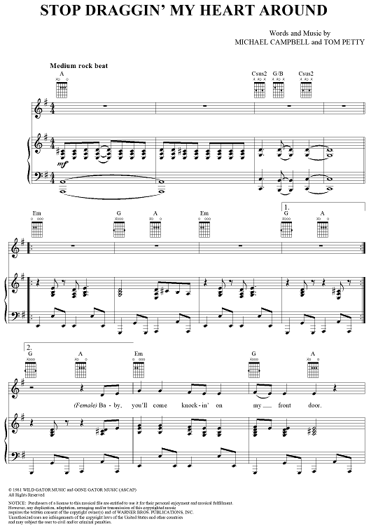 Digital Sheet Music for Stop Draggin' My Heart Around by Stevie Nicks, Tom Petty, Mike Campbell scored for Piano/Vocal/Chords; id:220498