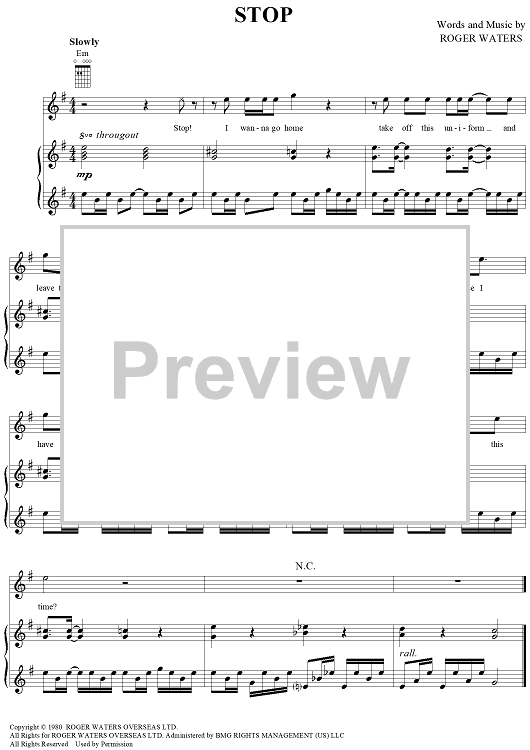 Digital Sheet Music for Stop by Pink Floyd, Roger Waters scored for Piano/Vocal/Chords; id:284293