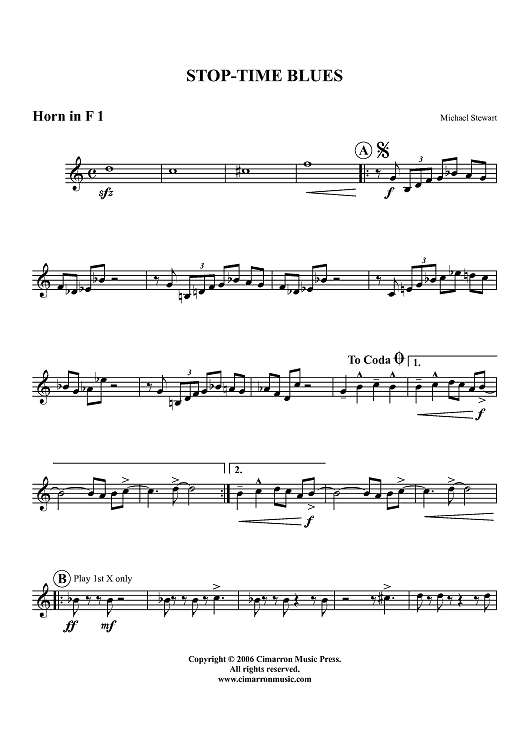 "Stop-Time Blues - Horn 1 in F" Sheet Music by Michael Stewart