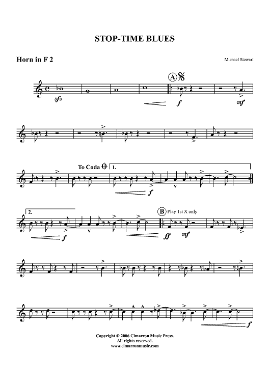 "Stop-Time Blues - Horn 2 in F" Sheet Music by Michael Stewart