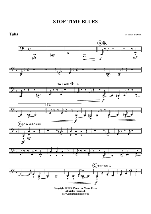"Stop-Time Blues - Tuba" Sheet Music by Michael Stewart