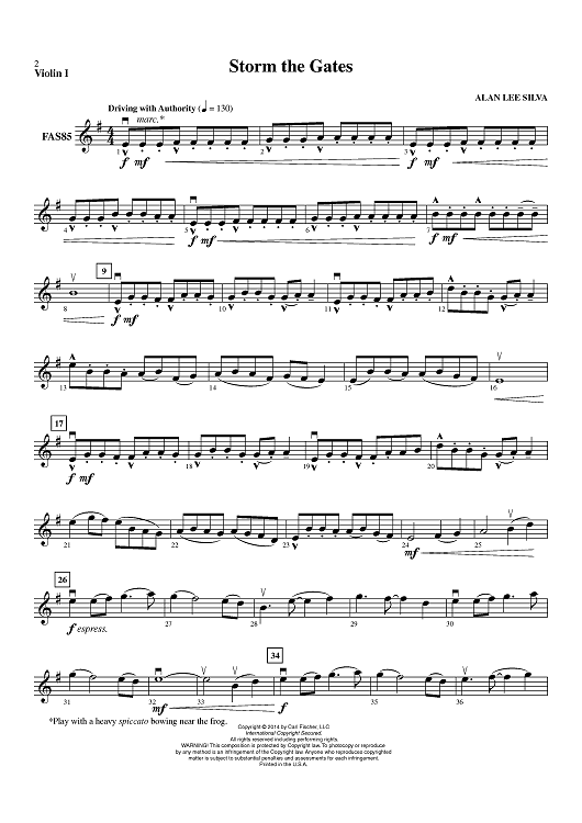 "Storm the Gates - Violin 1" Sheet Music by Alan Lee Silva