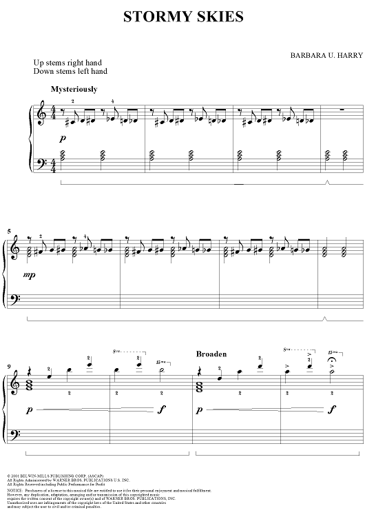 Digital Sheet Music for Stormy Skies by Barbara Harry scored for Piano Solo; id:292861
