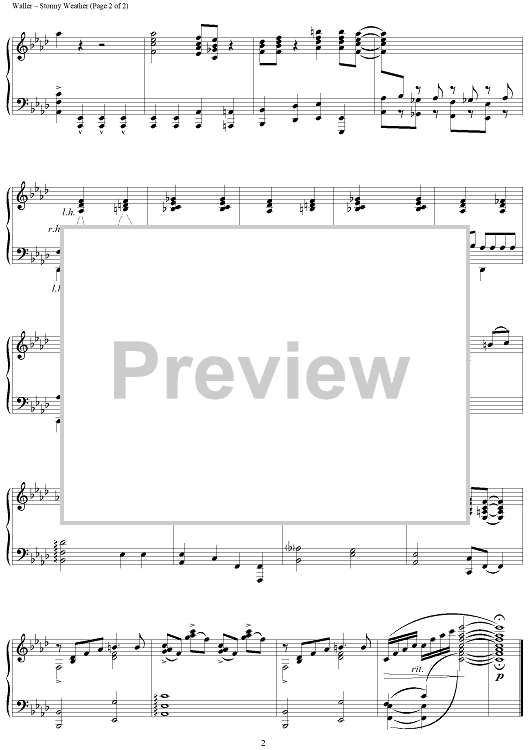 Digital Sheet Music for Stormy Weather (''Fats'' Waller's Conception) by Harold Arlen, Ted Koehler, Fats Waller scored for Piano Solo; id:316629