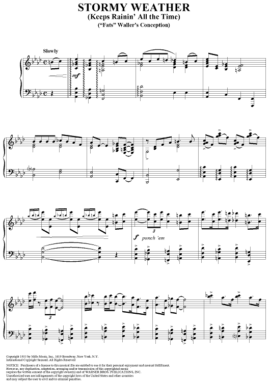 "Stormy Weather (''Fats'' Waller's Conception)" Sheet Music by Fats Waller