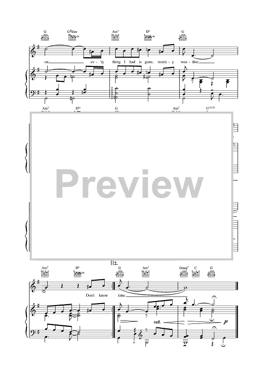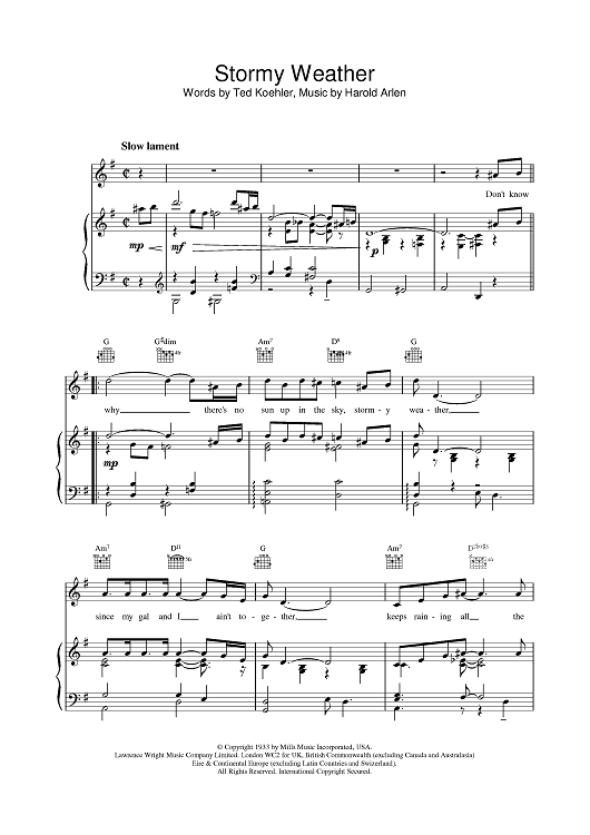 Digital Sheet Music for Stormy Weather by Harold Arlen, Judy Garland, Frank Sinatra, Billie Holiday, Lena Horne scored for Piano/Vocal/Chords; id:376104