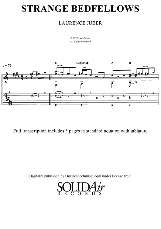 Digital Sheet Music for Strange Bedfellows (With Embedded Audio) by , Laurence Juber scored for Guitar Tab; id:452056
