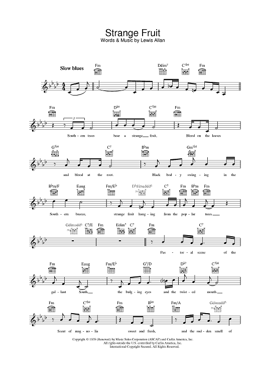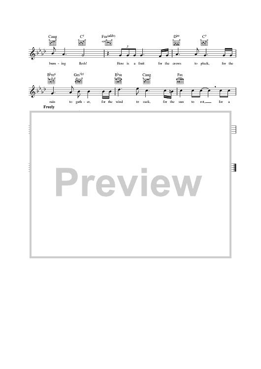 Digital Sheet Music for Strange Fruit by Billie Holiday scored for Lead Sheet; id:377109