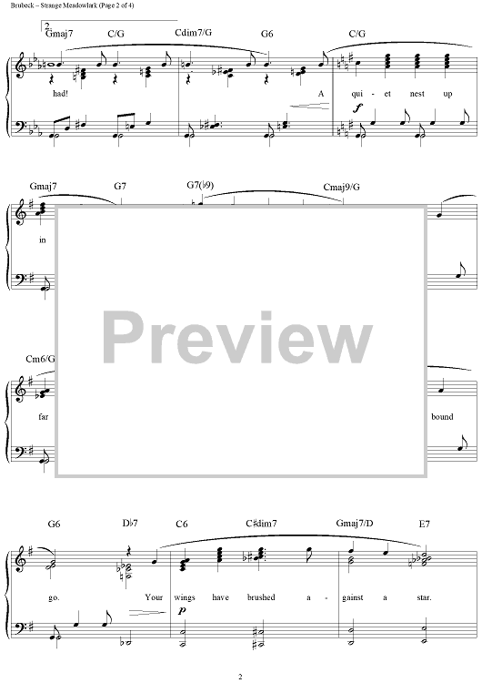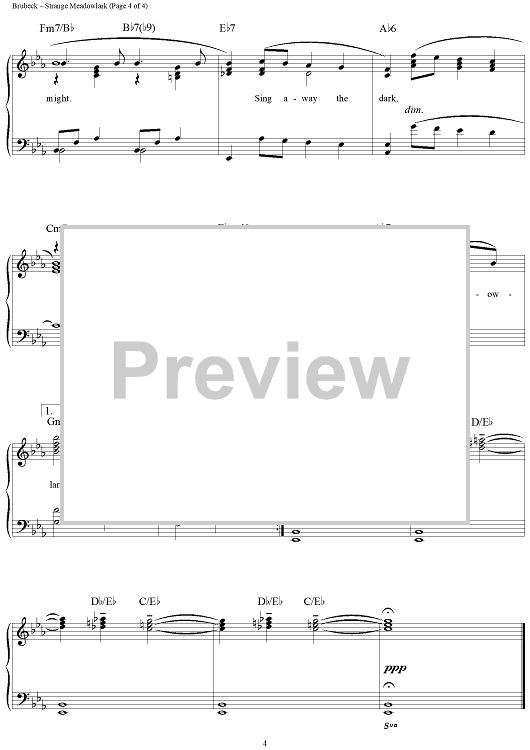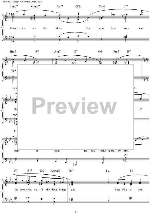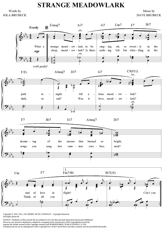Digital Sheet Music for Strange Meadowlark by Iola Brubeck, Dave Brubeck scored for Piano/Vocal/Chords; id:109252