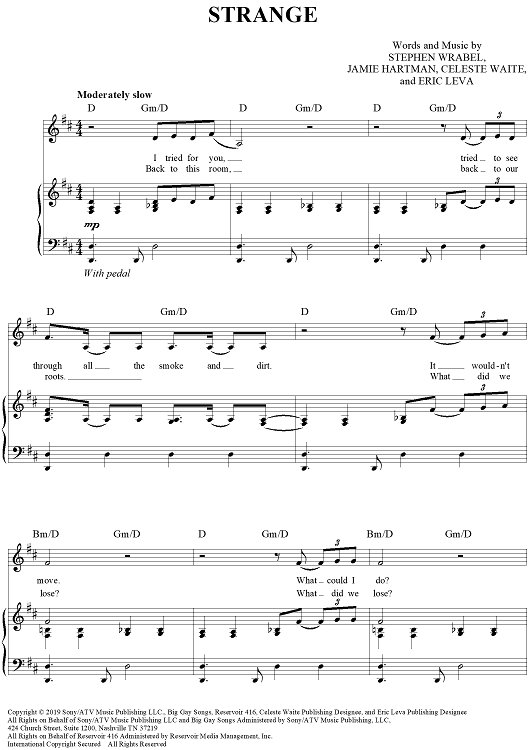 Digital Sheet Music for Strange by Jamie Hartman, Stephen Wrabel, Celeste, Eric Leva scored for Piano/Vocal/Chords; id:468116