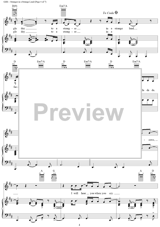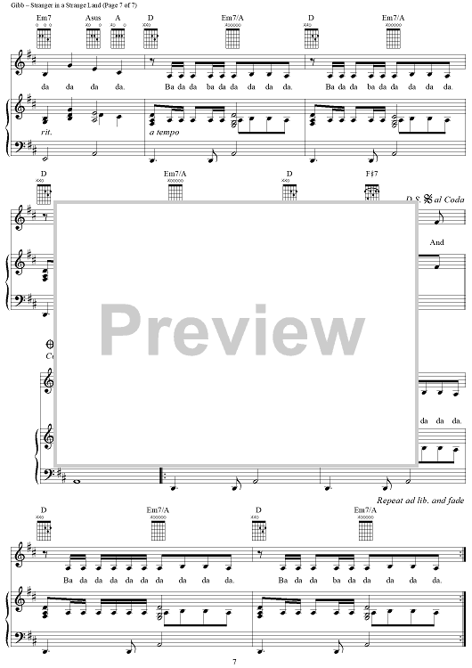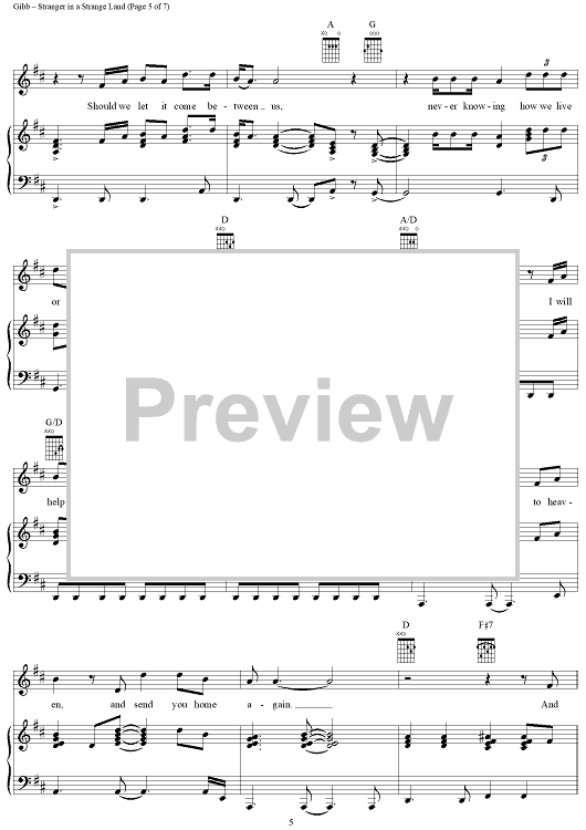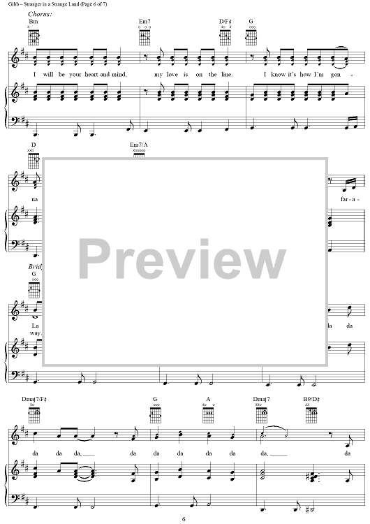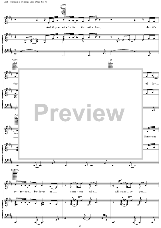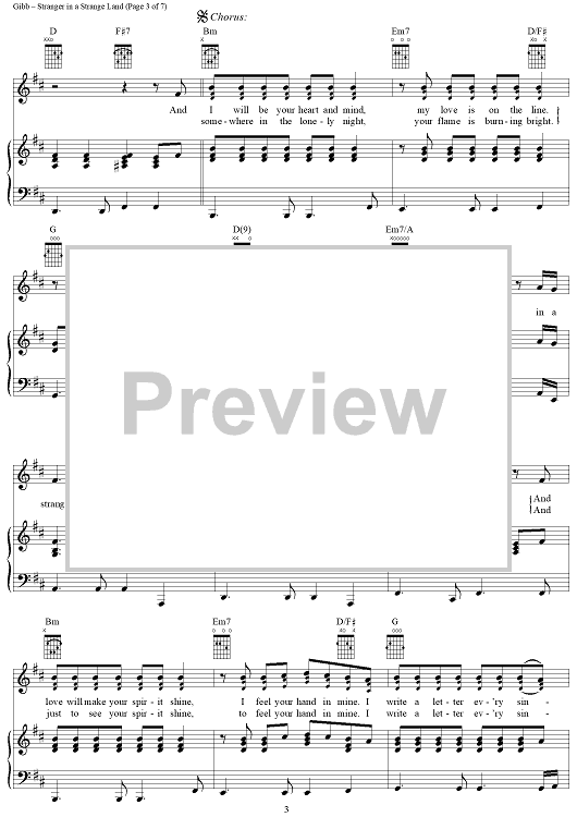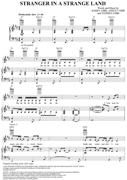 Digital Sheet Music for Stranger in a Strange Land by Barry Gibb, Ashley Gibb, Barbra Streisand, Steve Gibb scored for Piano/Vocal/Chords; id:315884