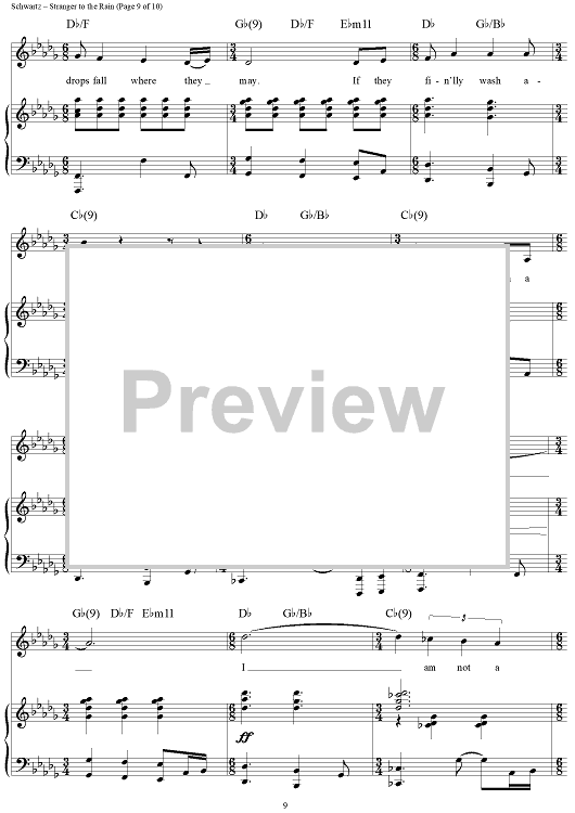 Digital Sheet Music for Stranger to the Rain by Stephen Schwartz scored for Piano/Vocal/Chords; id:257500