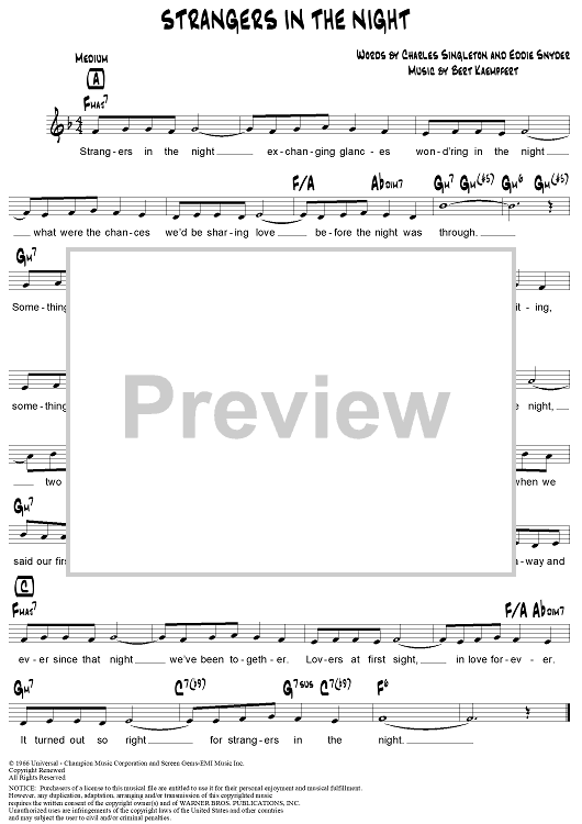 Digital Sheet Music for Strangers in the Night by Frank Sinatra, Eddie Snyder, Bert Kaempfert, Charles Singleton scored for Lead Sheet; id:315159