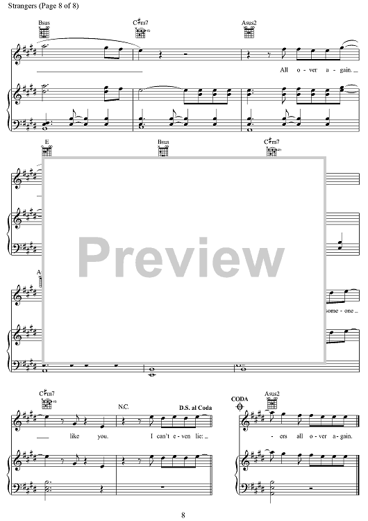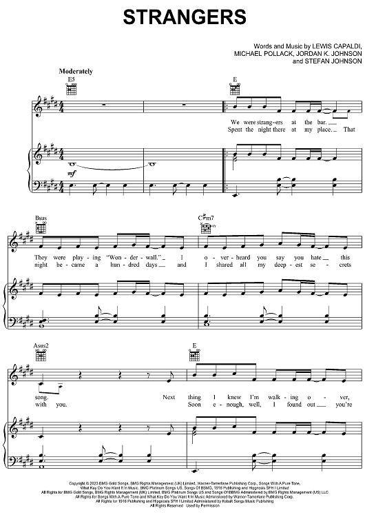 Digital Sheet Music for Strangers by Jordan Johnson, Stefan Johnson, Michael Pollack, Lewis Capaldi scored for Piano/Vocal/Chords; id:501376