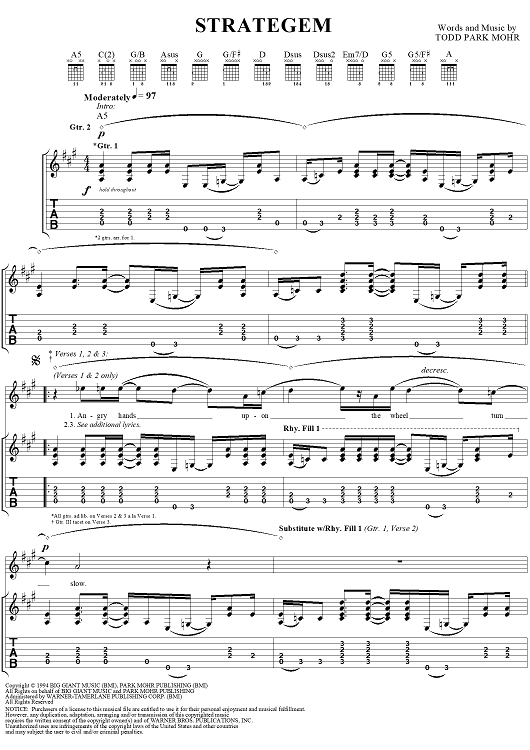 Digital Sheet Music for Strategem by Todd Park Mohr, Big Head Todd and the Monsters scored for Guitar Tab/Vocal; id:118835