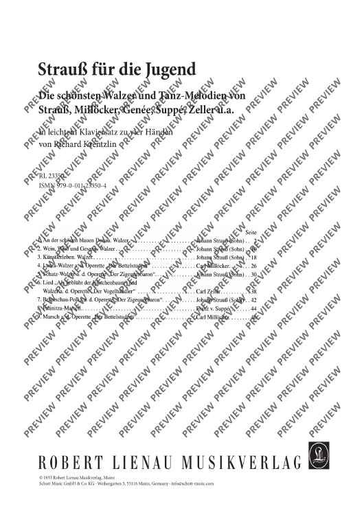 Digital Sheet Music for Strauß for Young People by Richard Krentzlin scored for Piano (4 Hands); id:509815
