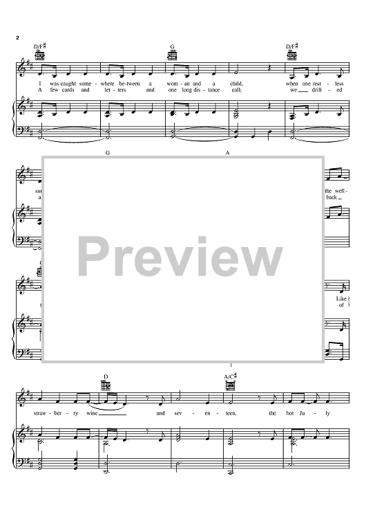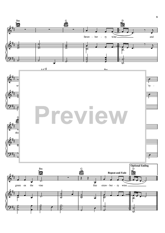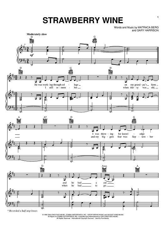 Digital Sheet Music for Strawberry Wine by Deana Carter, Matraca Berg, Gary Harrison scored for Piano/Vocal/Chords; id:370096