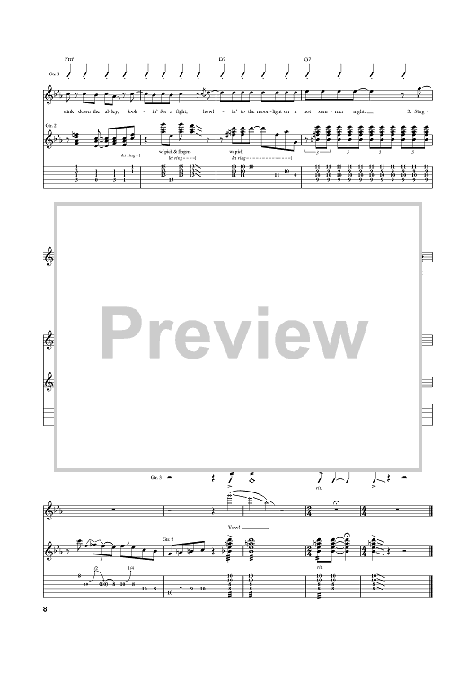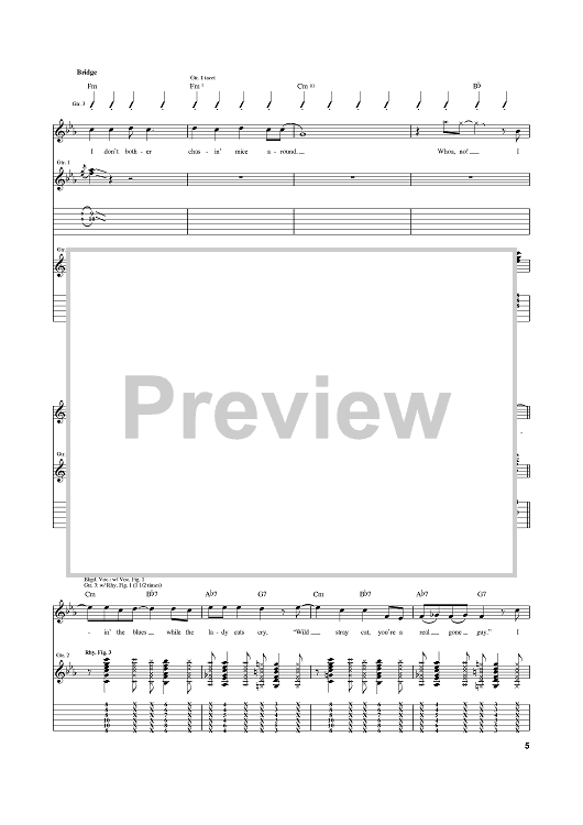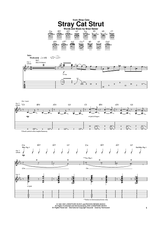 Digital Sheet Music for Stray Cat Strut by Brian Setzer, The Stray Cats scored for Guitar Tab; id:372854