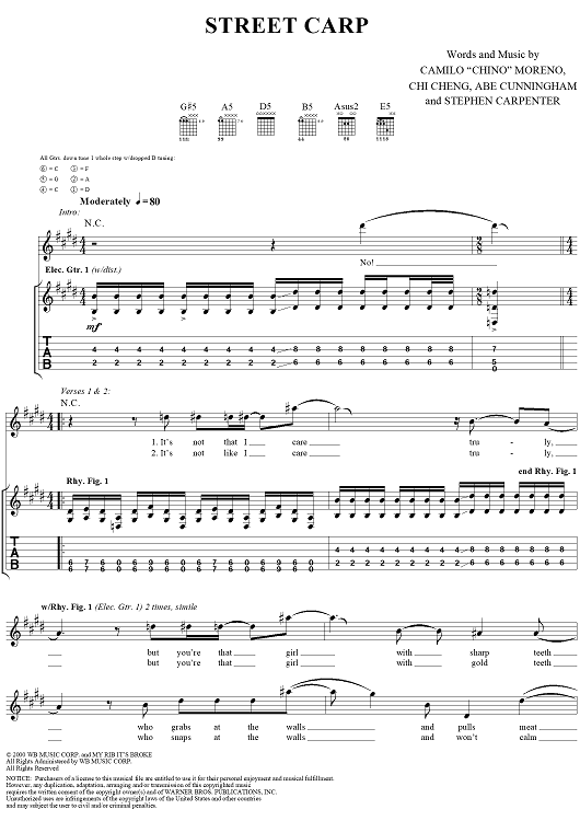 Digital Sheet Music for Street Carp by Deftones, Chino Moreno, Chi Cheng, Abe Cunningham scored for Guitar Tab/Vocal; id:286532