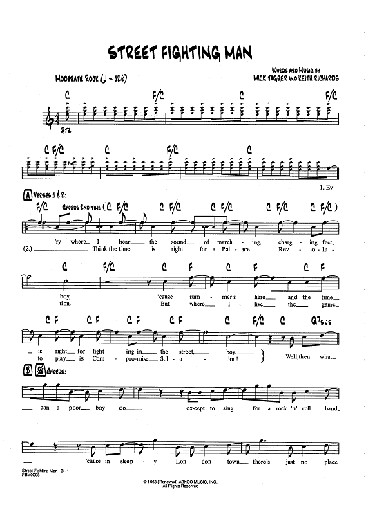Digital Sheet Music for Street Fighting Man by Keith Richards, The Rolling Stones, Mick Jagger scored for Lead Sheet; id:437601