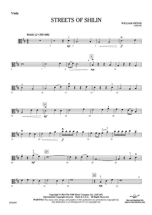 Digital Sheet Music for Streets of Shilin - Viola by William Owens scored for Orchestra; id:448221