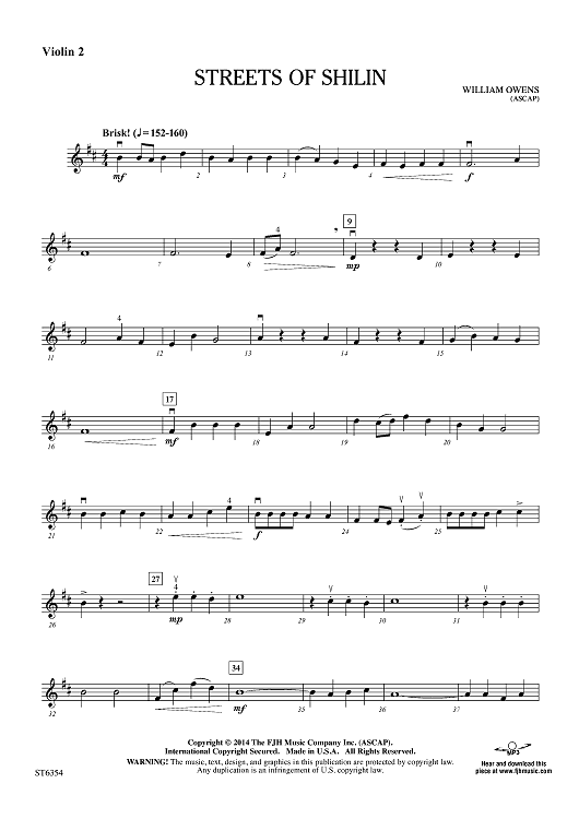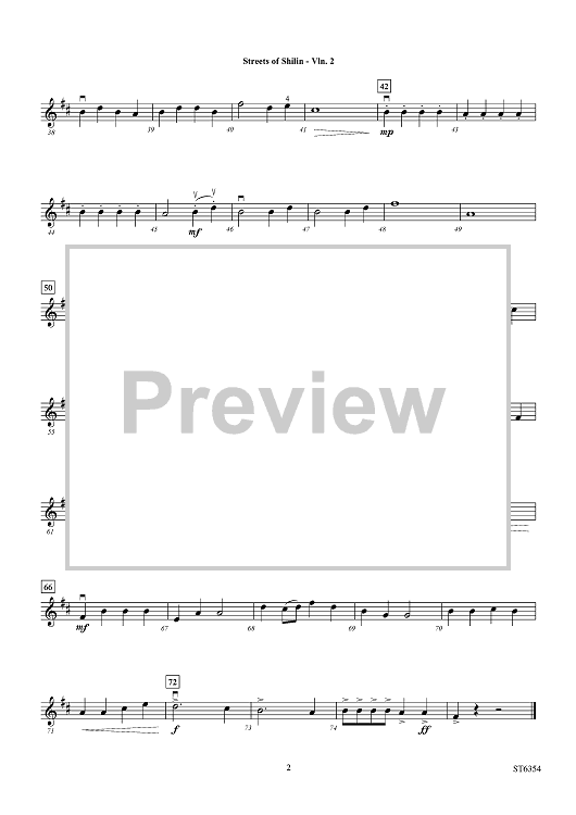 Digital Sheet Music for Streets of Shilin - Violin 2 by William Owens scored for Orchestra; id:448219