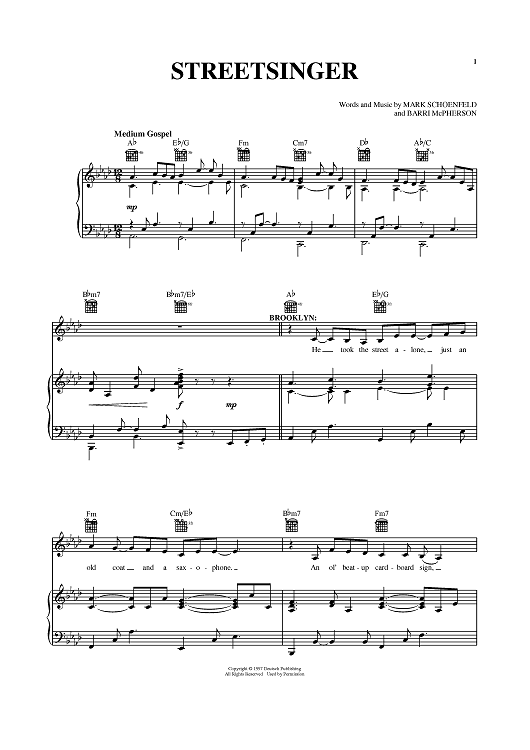 Digital Sheet Music for Streetsinger by Barri McPherson, Mark Schoenfeld scored for Piano/Vocal/Chords; id:390699