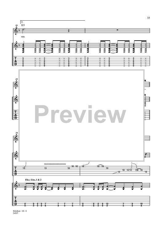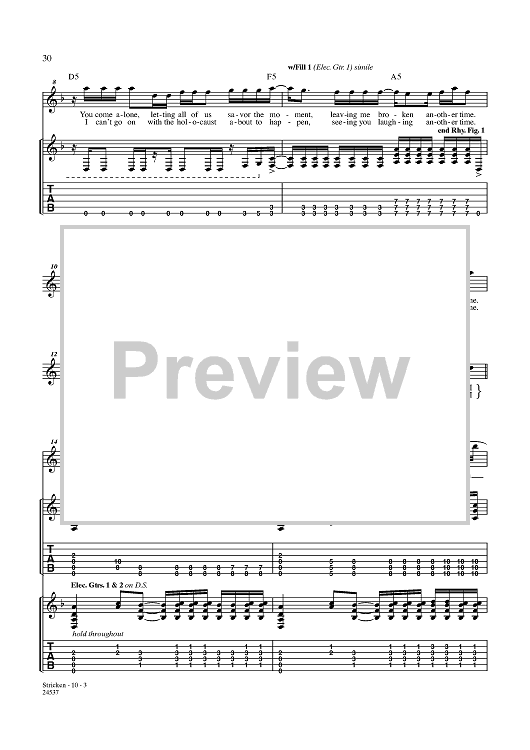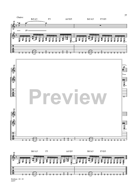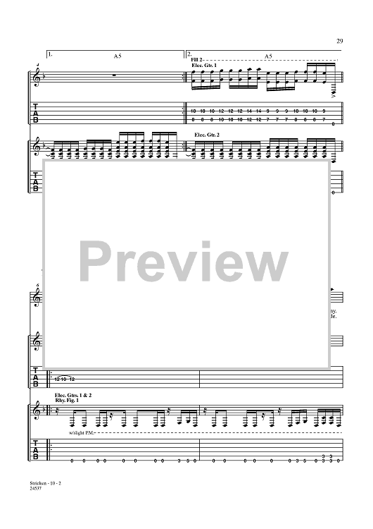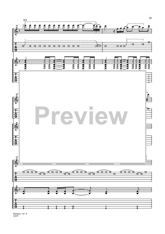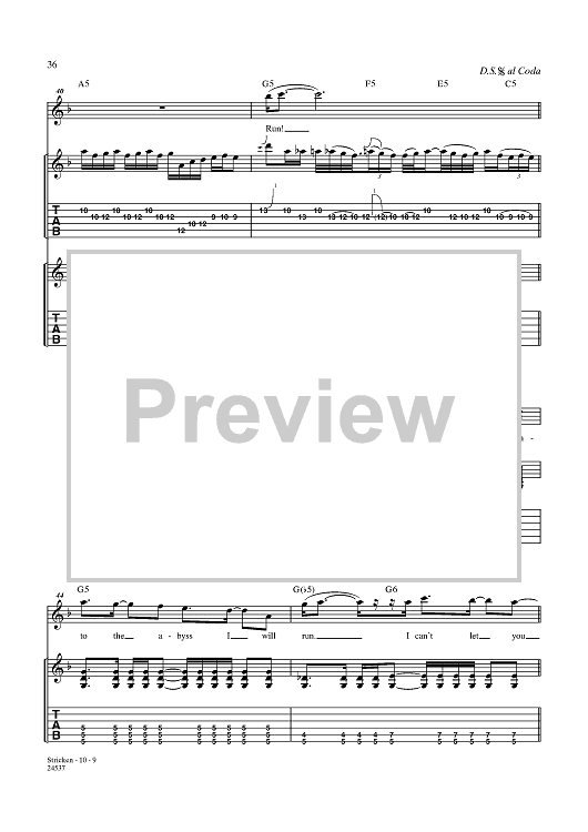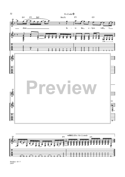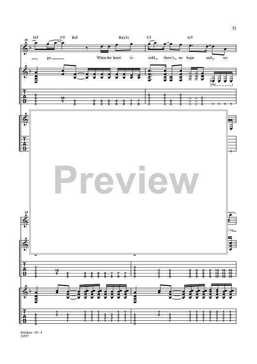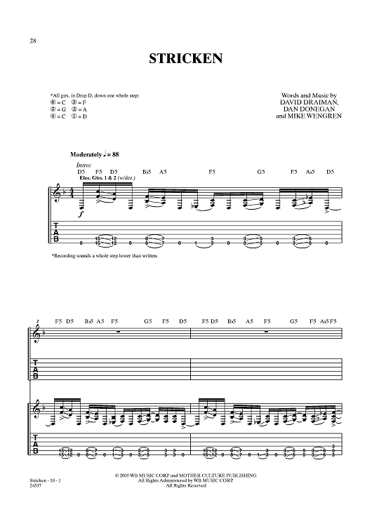 Digital Sheet Music for Stricken by Disturbed, Mike Wengren, Dan Donegan, David Draiman scored for Guitar Tab/Vocal; id:357793
