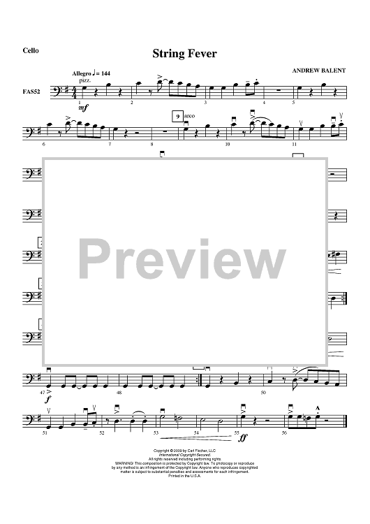 "String Fever - Cello" Sheet Music by Andrew Balent
