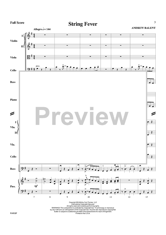 Digital Sheet Music for String Fever - Score by Andrew Balent scored for Orchestra; id:408316