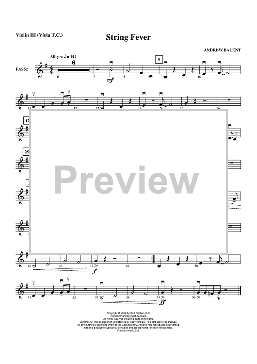 "String Fever - Violin 3" Sheet Music by Andrew Balent