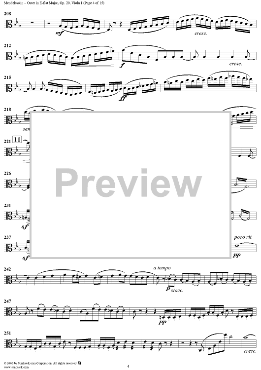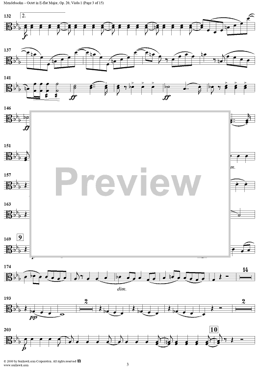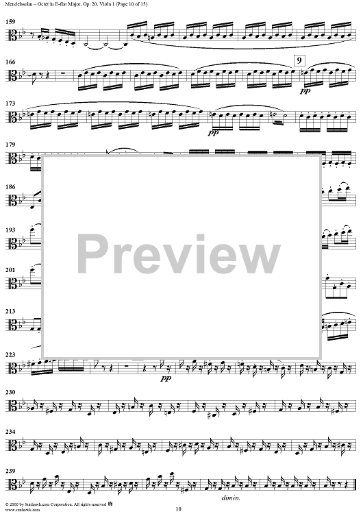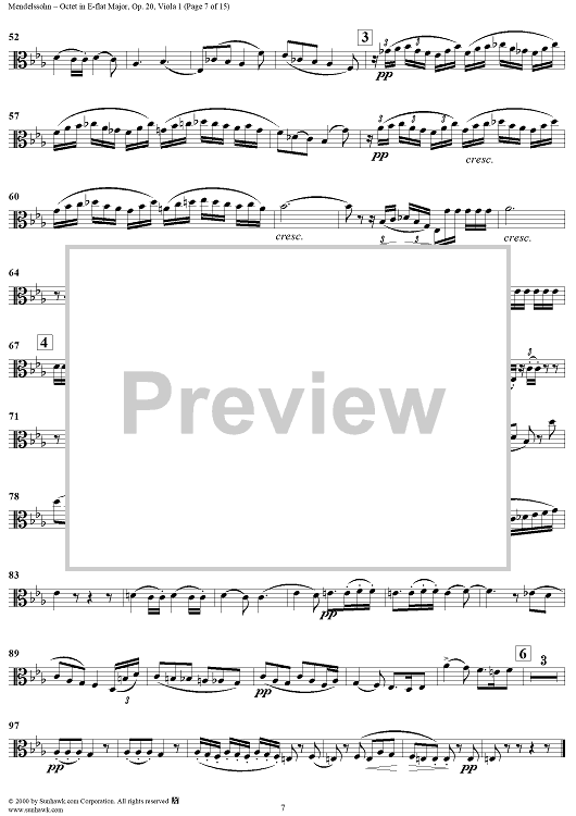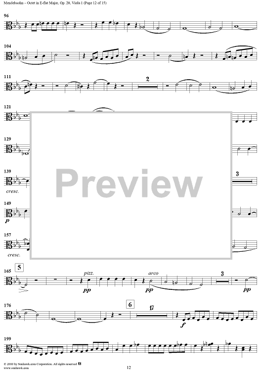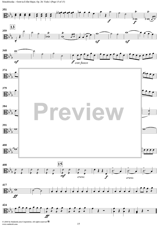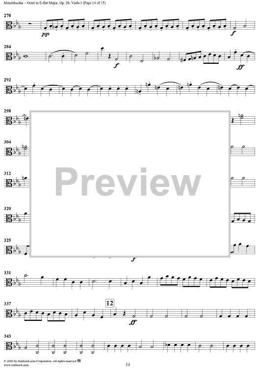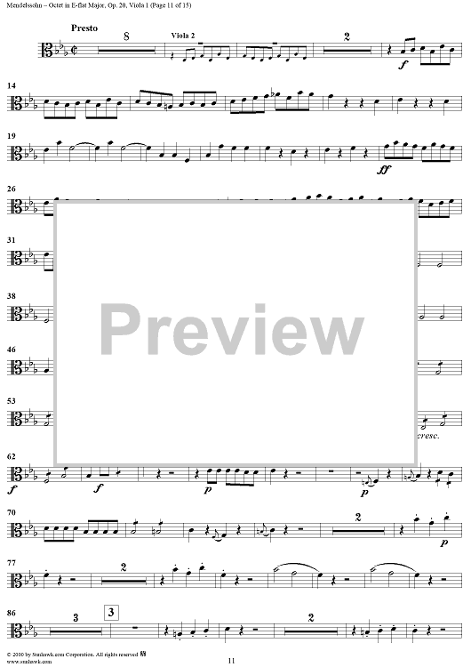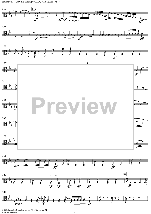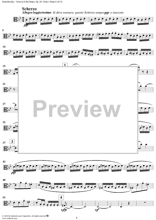 Digital Sheet Music for String Octet in E-flat Major, Op. 20 - Viola 1 by Felix Mendelssohn scored for String Octet; id:235517