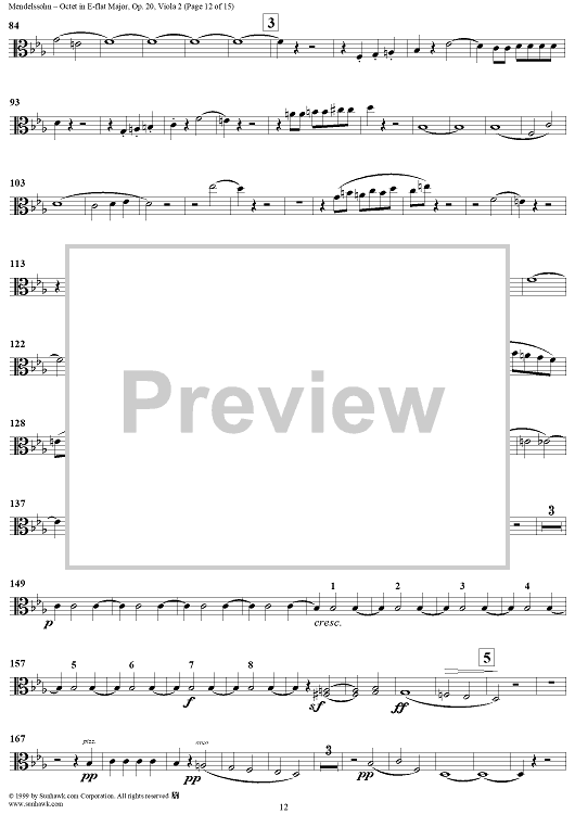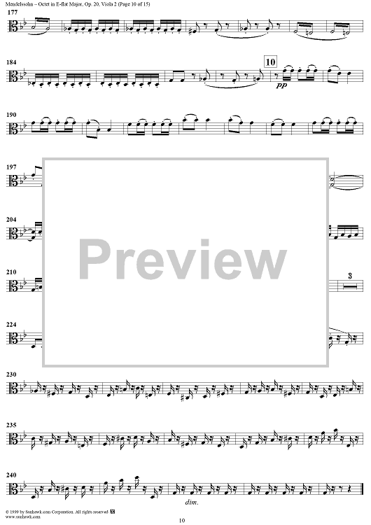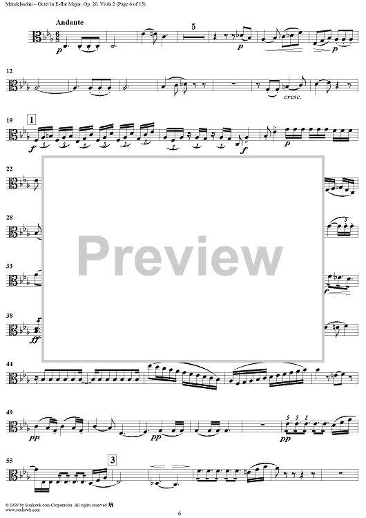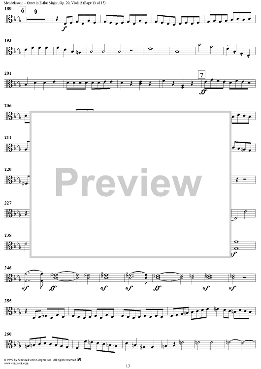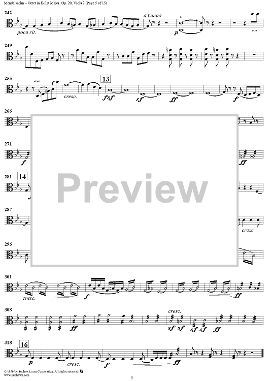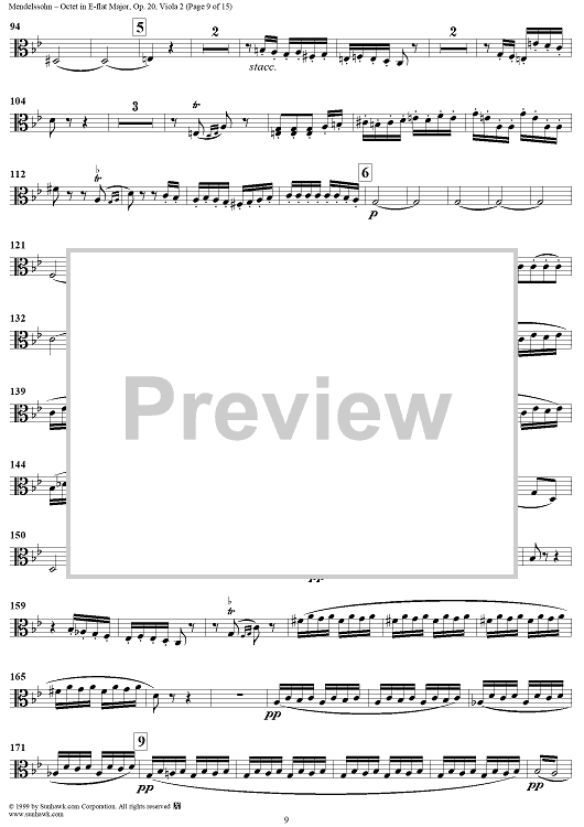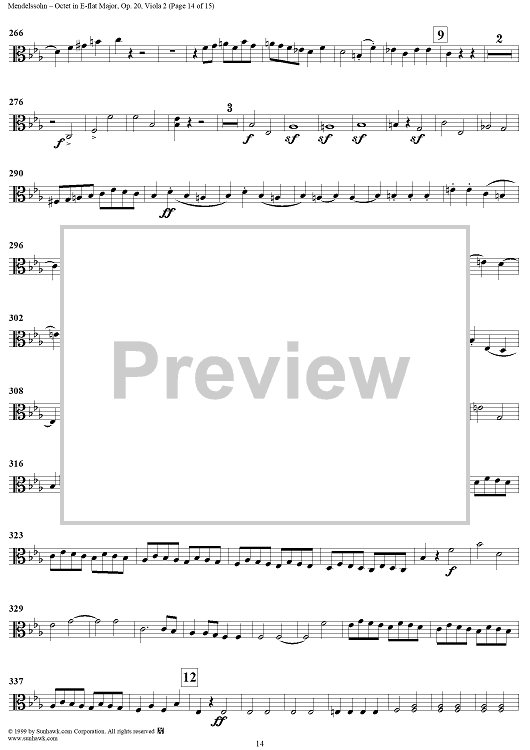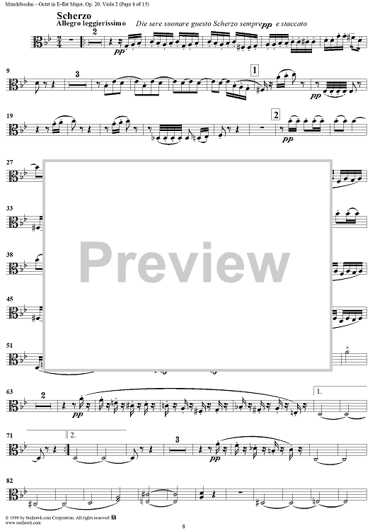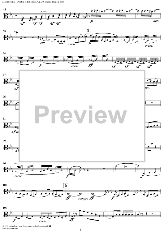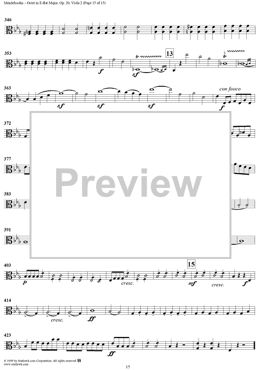 Digital Sheet Music for String Octet in E-flat Major, Op. 20 - Viola 2 by Felix Mendelssohn scored for String Octet; id:235521